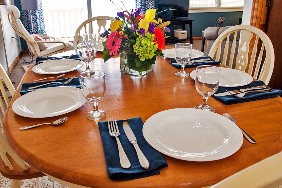 3 bedroom, 1 bath units with two queen beds, two twin beds, full kitchen, living room and dining area. Atlantic Suite three-bedroom units feature stunning ocean views, front and rear decks, access to common laundry, grills, and both public and private beaches.